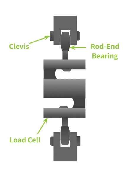 Attach the load cell using rod ends, clevises, hooks, or load buttons depending on whether the application measures tension, compression, or both.